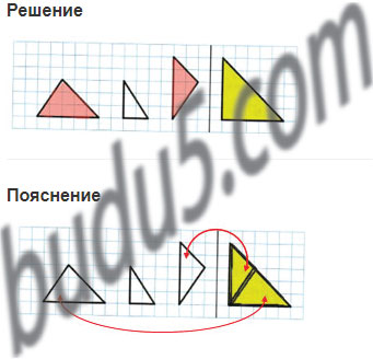 Из каких двух частей можно составить треугольник, который начерчен справа? Раскрась их.