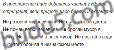 Объясните второклассникам, что природу важно беречь и охранять. Исправьте их предложения. Запишите получившийся вариант.