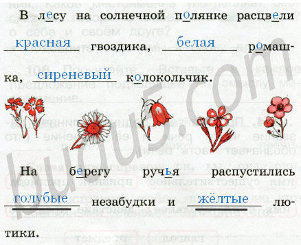 В л_су на солнечной п_лянке расцв_ли ___ гвоздика, ___ р_машка, ___ к_локольчик.