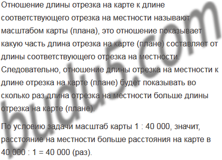 Во сколько раз расстояние на местности больше расстояния на карте, если масштаб карты 1 : 40 000?