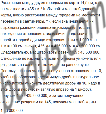 Расстояние между двумя городами на местности равно 435 км, а на карте - 14,5 см. Найдите масштаб карты.