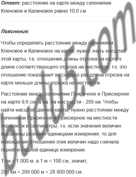 Расстояние между селениями Приречное и Приозерное на местности составляет 288 км, а на карте - 9,6 см. Какое расстояние между селениями Кленовое и Калиновое на этой же карте, если расстояние на местности между ними равно 324 км?