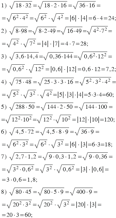 Найдите значение выражения, представив предварительно подкоренное выражение в виде произведения квадратов рациональных чисел: