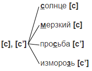 Приведите примеры слов, в которых звуки [с] и [с’] обозначаются буквами с, з.